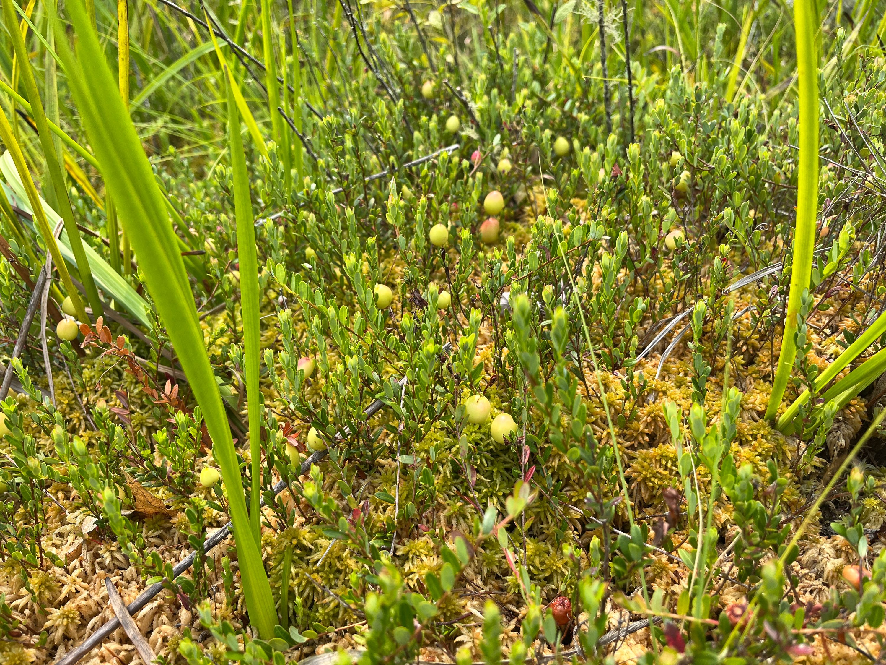 Assemblage of sphagnum and Cranberries at Sampson Brook Headwater Restoration.