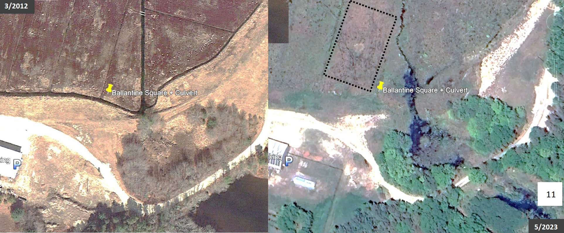 Google earth images from 2012 and 2023 of Ballantine Square and surrounding area