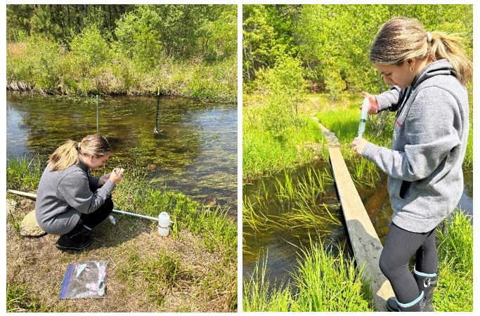 Brenna labels an unfiltered water sample at Tidmarsh (left) and filters a water sample at Eel River (right).