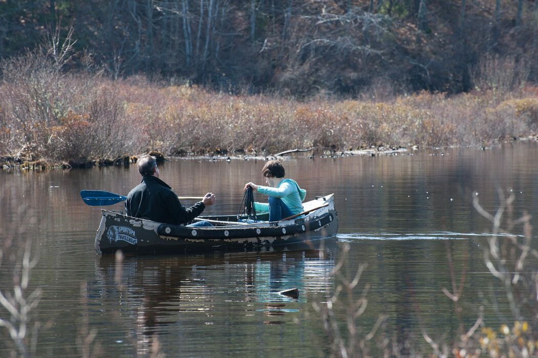 Gershon in a boat deploying microphone cable in one of our first audio installations.