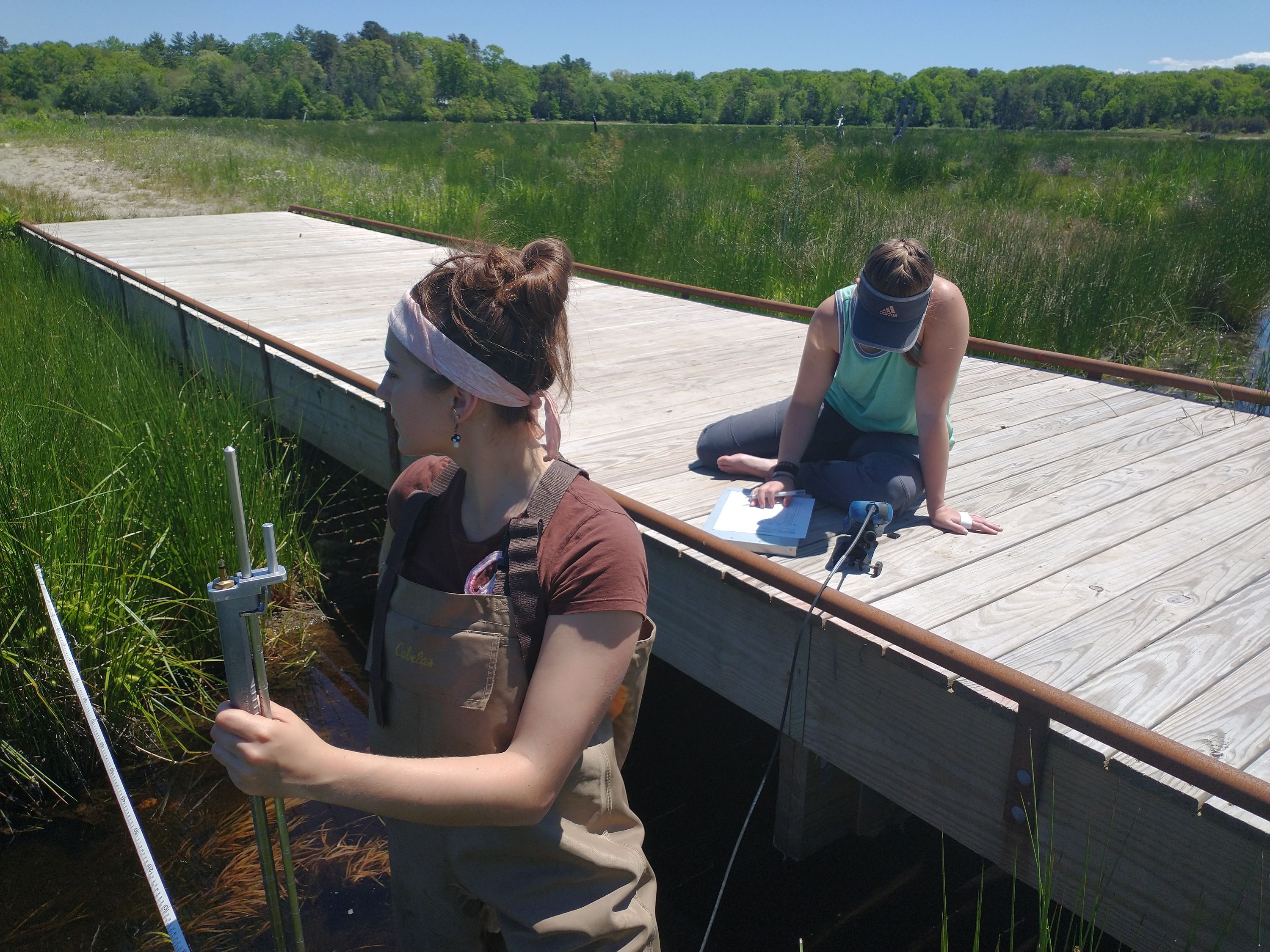 Ari and Emma measure upstream flow at Foothills Preserve to track how inputs and outputs have changed since restoration.