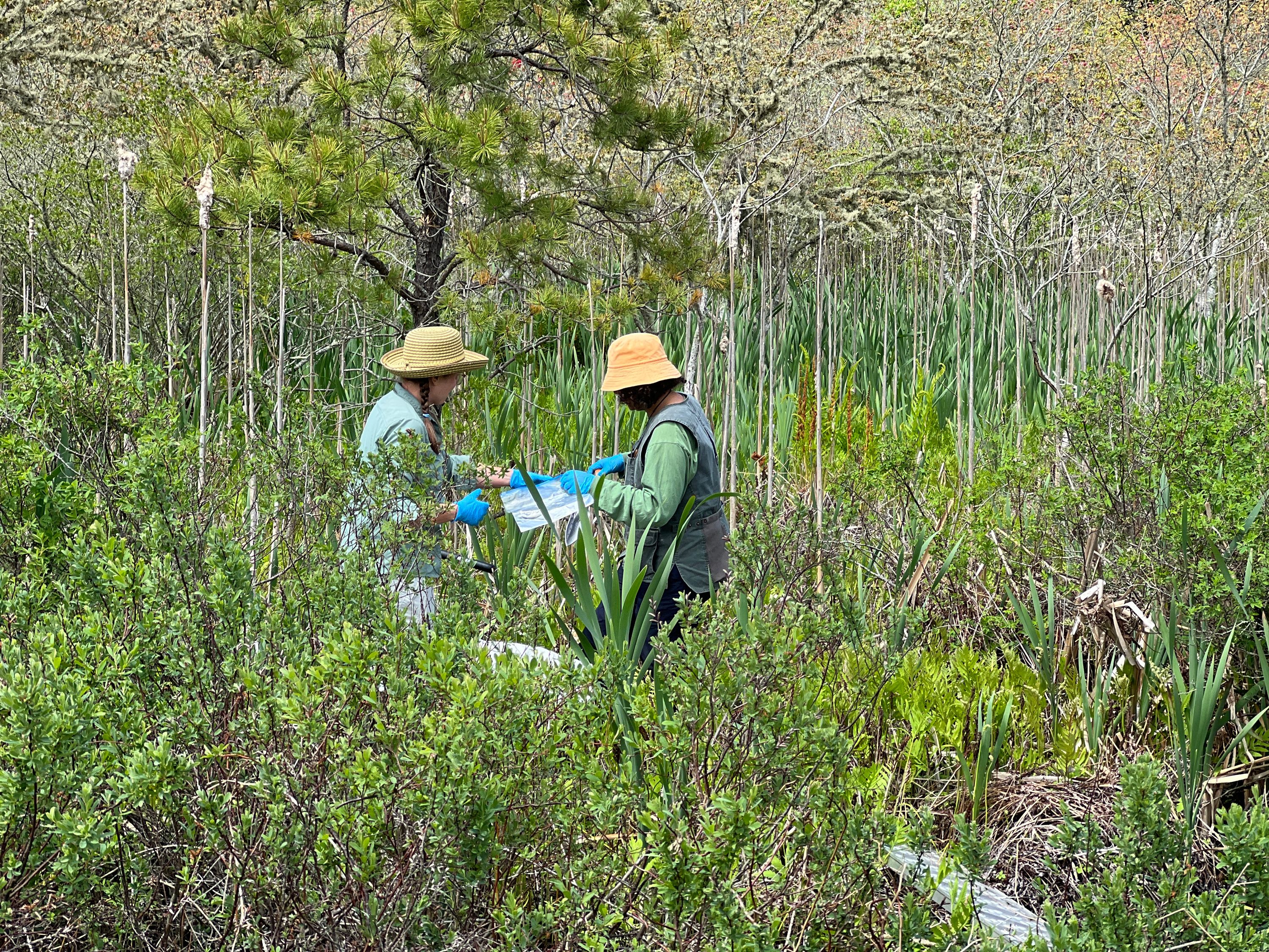 Kate and Olivia take soil samples at Upper Bass River bogs