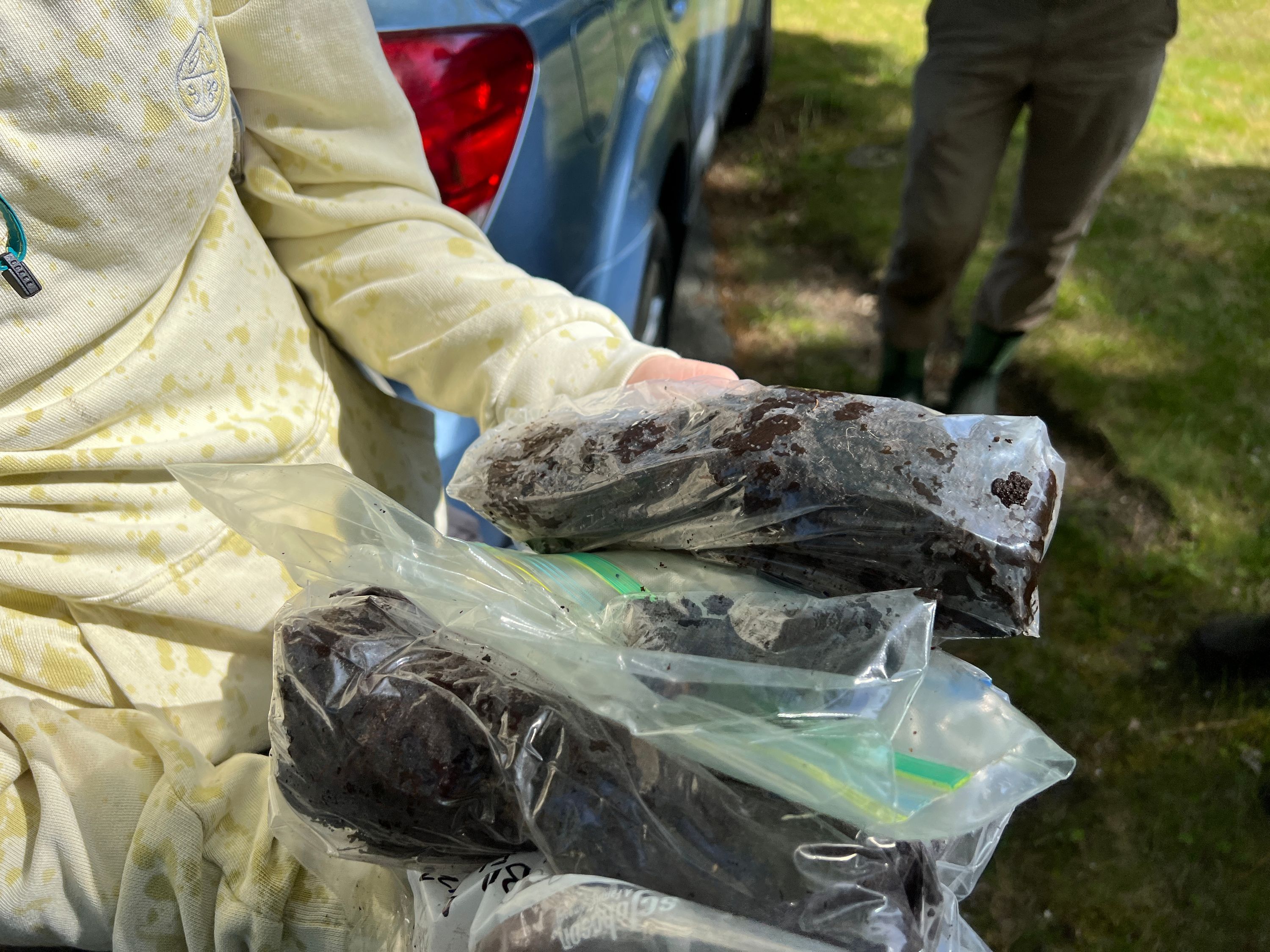 These soil samples are stored in a cooler until the team returns to Tidmarsh where the samples are transferred to a refrigerator. At the end of the week they are transported to Mount Holyoke to be ready for the coming weeks lab work.