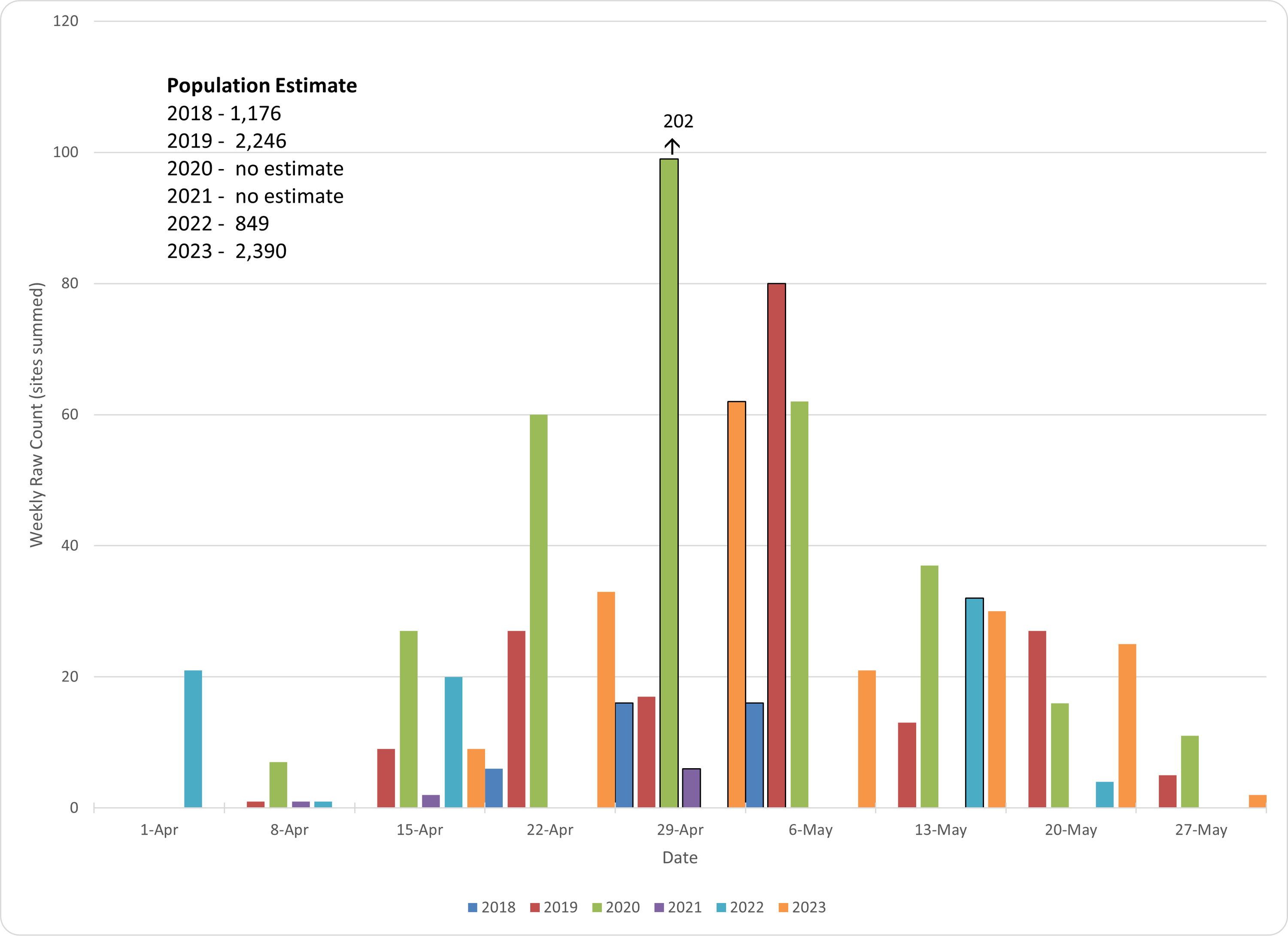 Weekly Herring Count, 2018-2023