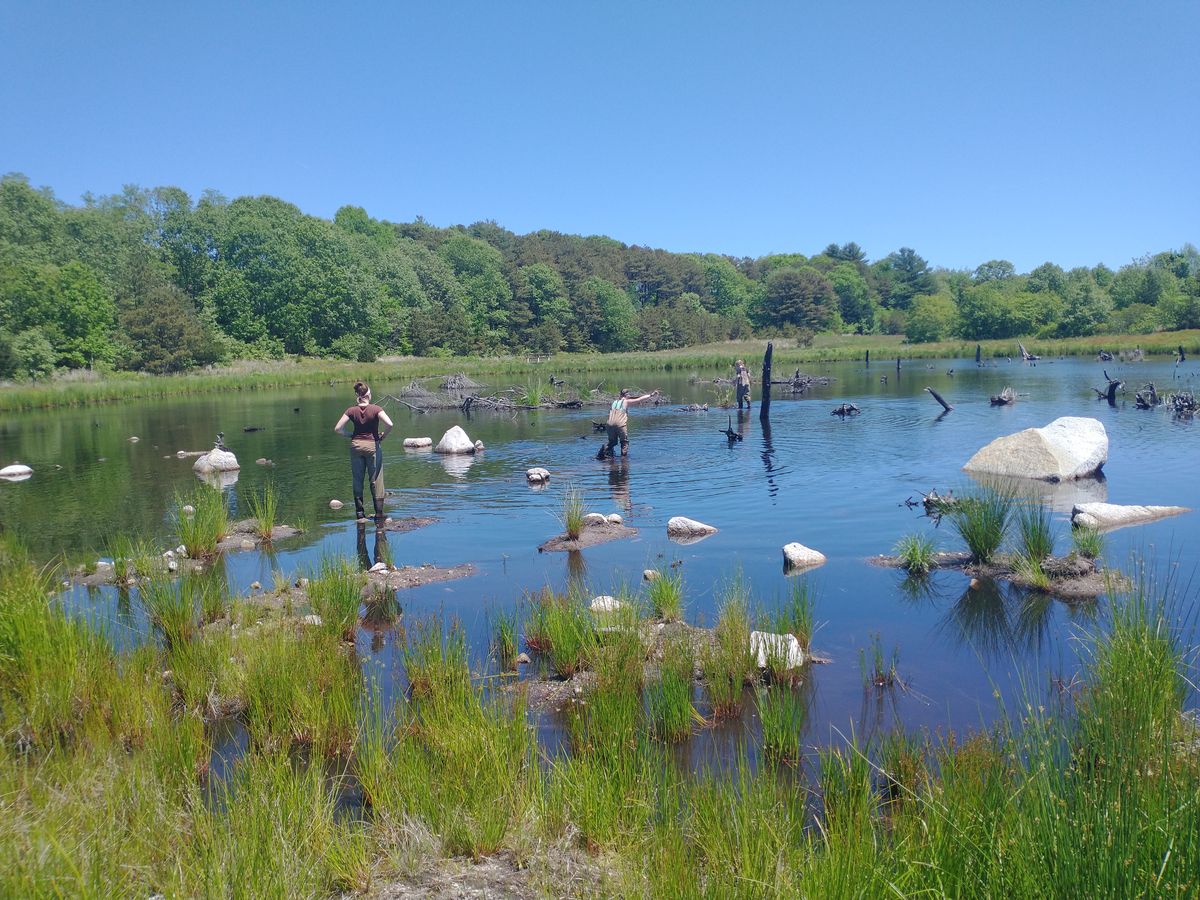 This past week, Christine led a field campaign to collect samples and data at Foothills Preserve. Our team included Lyn Watts, Emma Cady, Diana Holmes from UMass Amherst, as well as Francis Li from Smith College and Arianna Suarez from Williams College. We spent two days at Foothills Preserve measuring water levels, collecting water level and temperature data from data loggers, measuring stream discharge, installing seepage meters, and installing seepage meters. The water level in one of the ponds was lower than it was at the beginning of May, but there is still plenty of water on site!