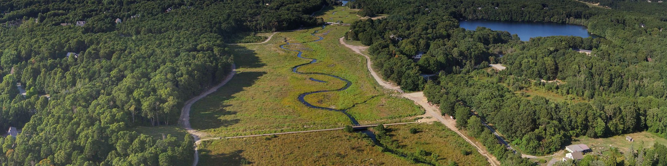 The wetland restoration project was realized in two phases. Phase 1 was completed in 2018, and included the removal of the Lower Bog dam, the reconstruction of the river channel, the restoration of 17 acres of wetland, and the installation of a boardwalk and bridge. Phase 2, completed in 2020, included the removal of the Middle Bog dam, installation of a public access boardwalk, and restoration of 39 acres of wetland across the former cranberry farm growing surface. This phase of the restoration was funded by NOAA, an MVP grant, DER (and USFWS), NRCS and CPA and included the replacement of three failing culverts under John Parker Road with a bridge which will allow migratory fish to access their upstream habitat, including the 158-acre Coonamessett Pond.