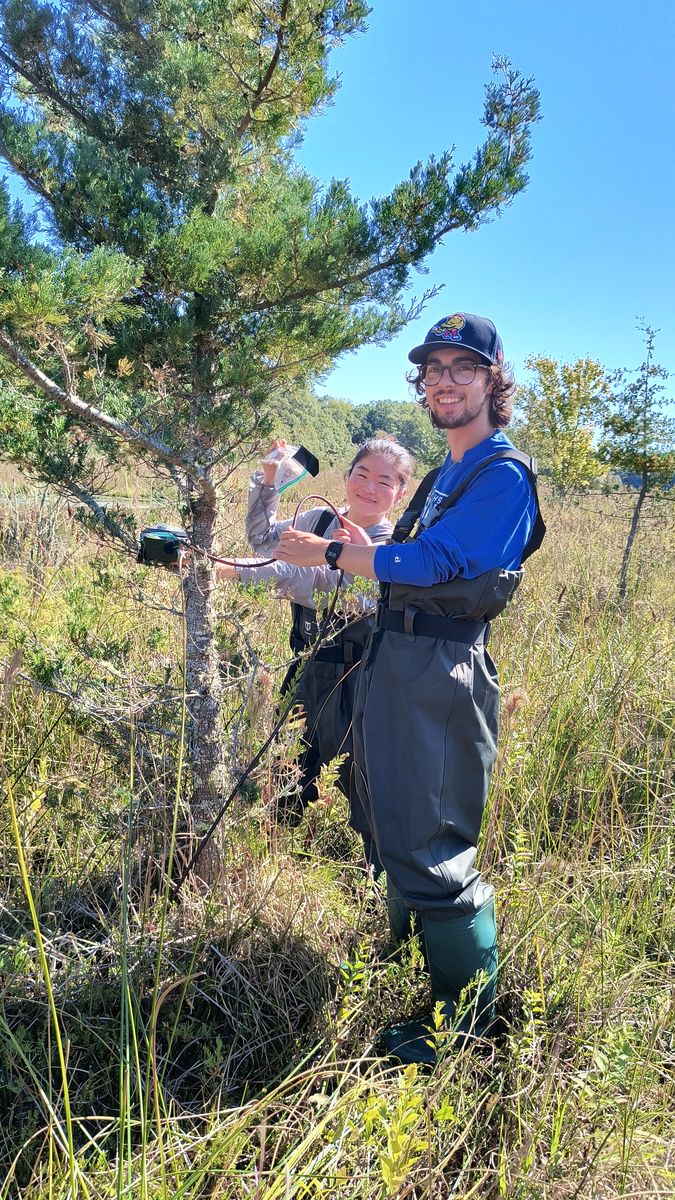Erica Cai and Leo Kertz (pictured below) will be using the sounds for their honors thesis, assessing soundscape differences across sites and how the landscape context affects the sounds within the wetlands.